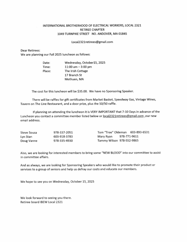 President: Steve Sousa steve317@msn.com 978-337-2051